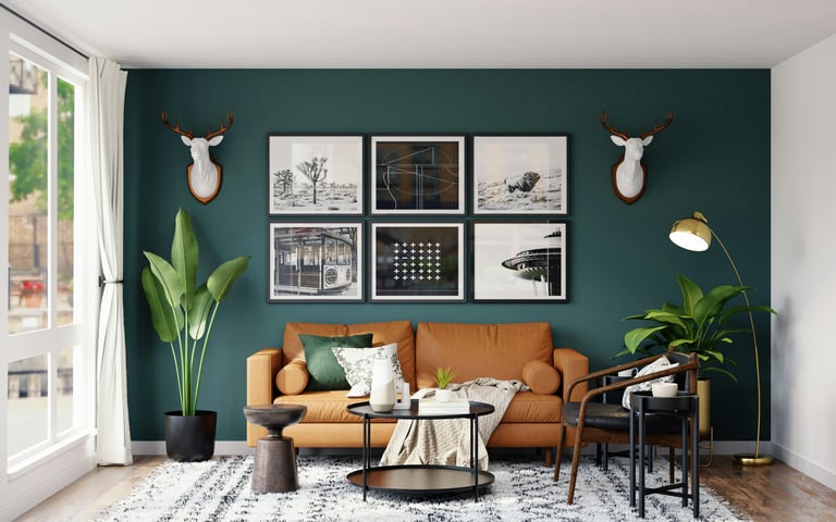 ● Accent lighting (wall sconces, LED strips, candles) to highlight artwork or textures.
